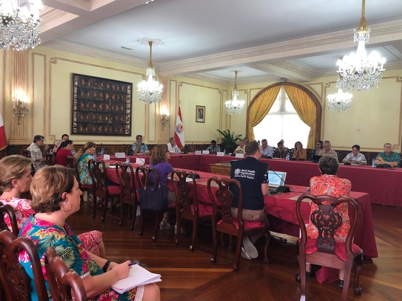 WHO expert Sean Casey briefing the President and Ministers of French Polynesia at the Presidential Palace, March 20, 2020