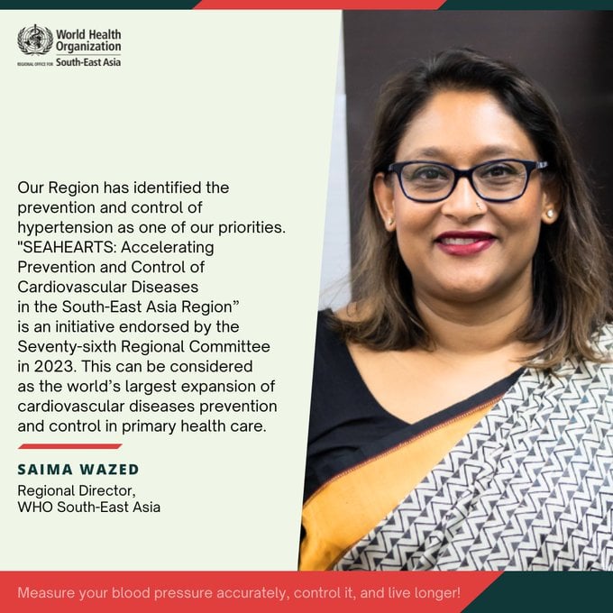 The SEAHEARTS initiative adapting WHO HEARTS elements in the South-East Asia Region was introduced on World Heart Day 2022 as a response to accelerate the efforts in countries for the prevention and control of cardiovascular diseases (CVDs). SEAHEARTS brings together efforts made for risk factor reduction (tobacco control, salt reduction and eliminating industrially produced trans-fatty acids) and improving hypertension and diabetes treatment cascade in the broader context of NCD prevention and control. SEAHEARTS emphasizes the accelerated implementation of WHO technical packages – WHO HEARTS (technical package for CVD management in primary health care), WHO MPOWER (measures to reduce the demand for tobacco, contained in the WHO Framework Convention on Tobacco Control), WHO SHAKE (technical package for salt reduction) and WHO REPLACE (technical package for eliminating industrial produced trans-fatty acids) within the local context settings. SEAHEARTS holds the potential to save lives and improve the well-being of millions.