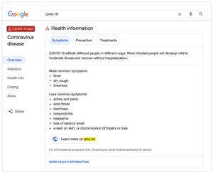 WHO is also working with search engines like Google to ensure that people who actively seek COVID-19 related content online are met with accurate information, often tailored by location and language. Most recently, in March 2021, WHO and Google launched an organized search results panel on COVID-19 vaccines with the most up-to-date information about safety, effectiveness, side-effects and more.