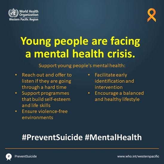 The Western Pacific Region faces a looming mental health crisis, driven by social pressures, vulnerabilities and unrest, amplified by the wide ranging impact of the COVID-19 pandemic on communities everywhere. Over 215 million people are living with a mental health condition in the Region. Suicide continues to be a leading cause of death among young people, and for every death, there are many more suicide attempts. At the same time, demographic shifts in some countries is increasing the proportion of older people contributing to the growing prevalence of dementia and other mental health conditions related to ageing.