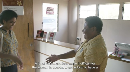 My name is Karolina Tamani, I’m originally from Kadavu in the southern part of Fiji and I’m 62 years old. My role as a nurse midwife at the Fiji Cancer Society is specifically to conduct clinical screening for cervical cancer, breast cancers and also to conduct awareness in the community regarding the prevention, the symptoms of cervical cancer.
